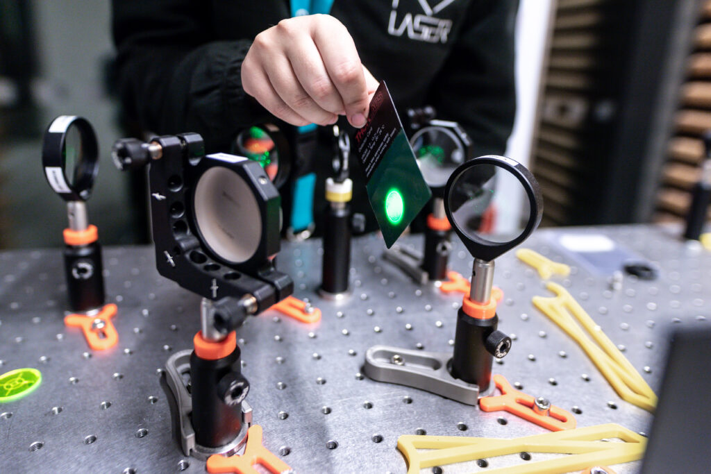 - Vyzkoušíte si práci laserových fyziků, konkrétně nastavování laserového svazku na optickém stole.