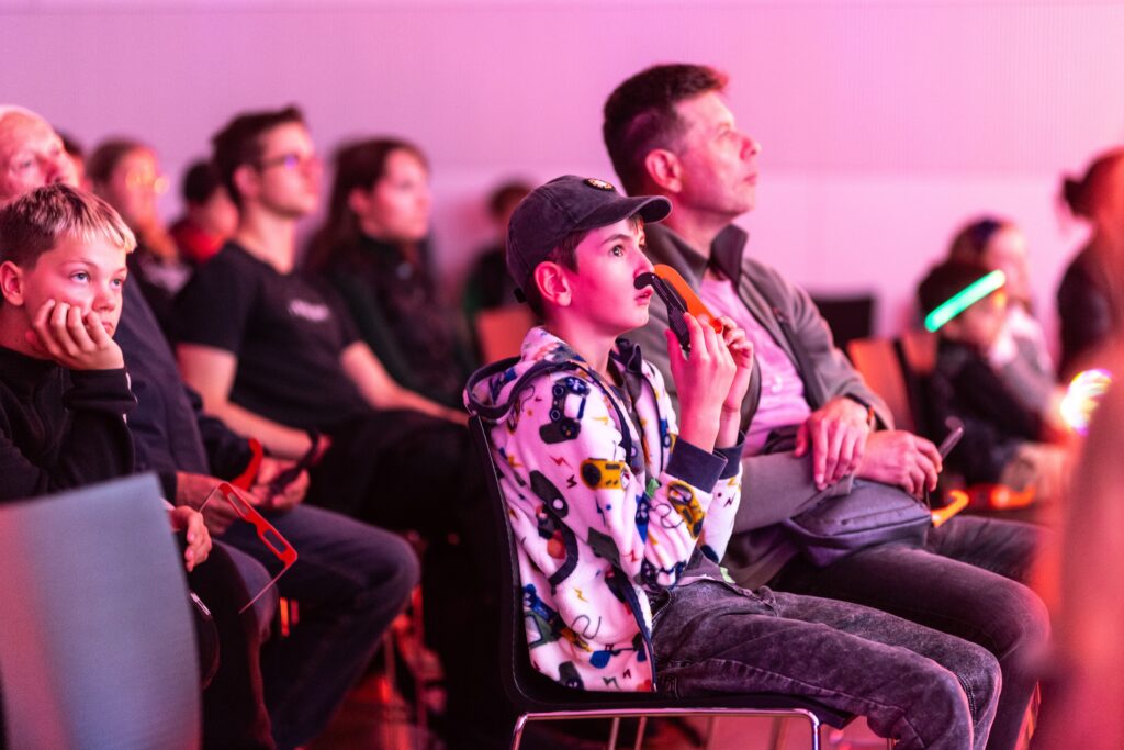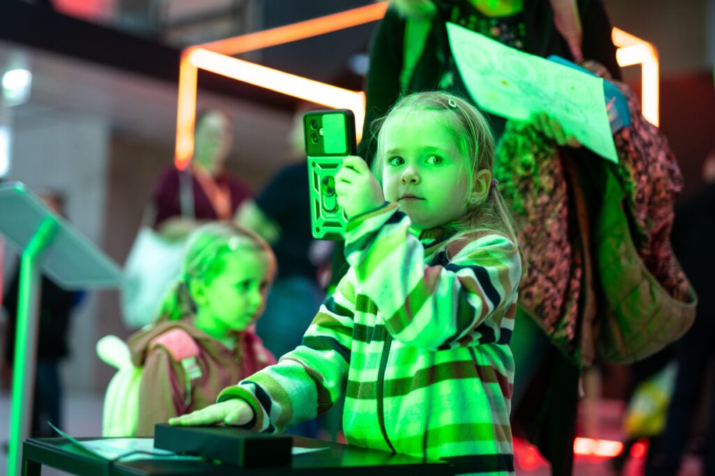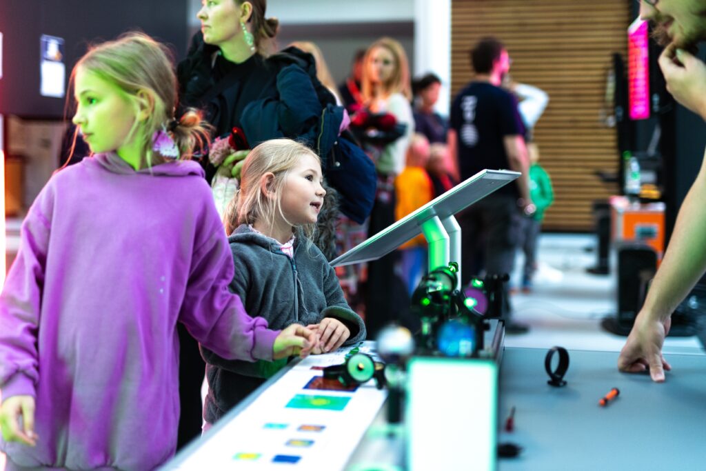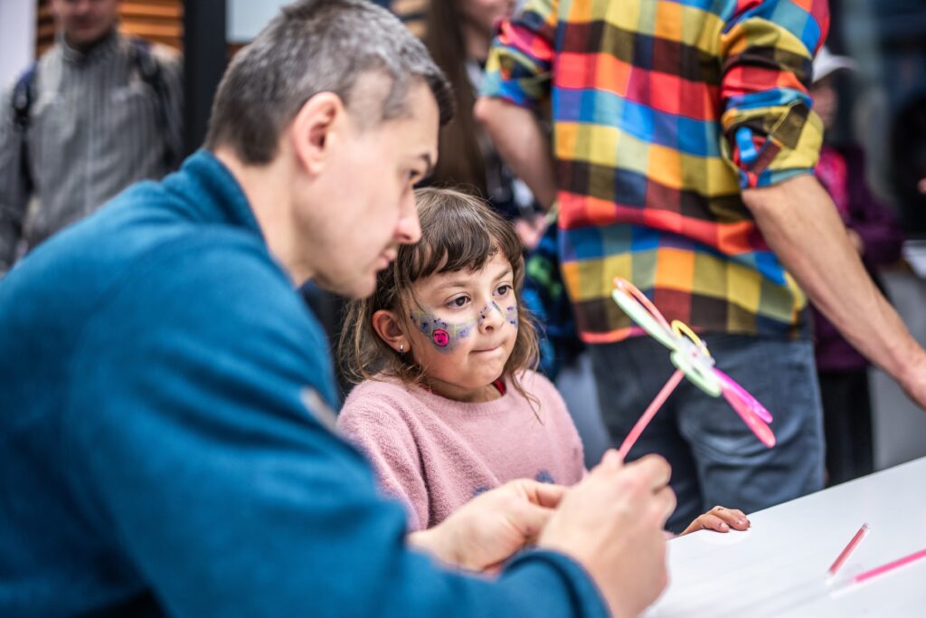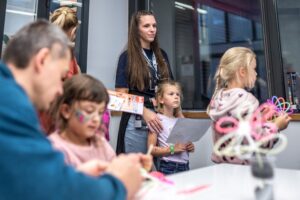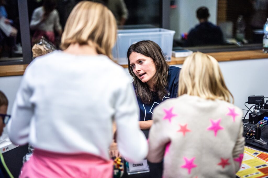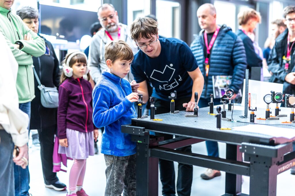 • Ani malí fanoušci vědy u nás nezůstali stranou dění – čekaly na ně aktivity, které kombinují zábavu s experimentováním, přemýšlením a vědeckými výzvami, i několik vyloženě hravých zastávek (laserové šachy, Laser Maze, malování na obličej fosforescenčními barvami nebo oblíbené tvoření ze svítících tyčinek).