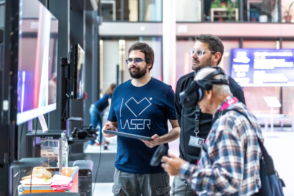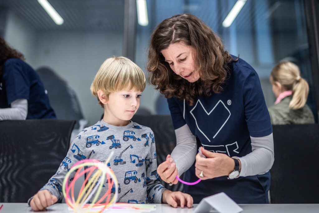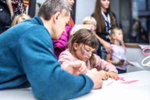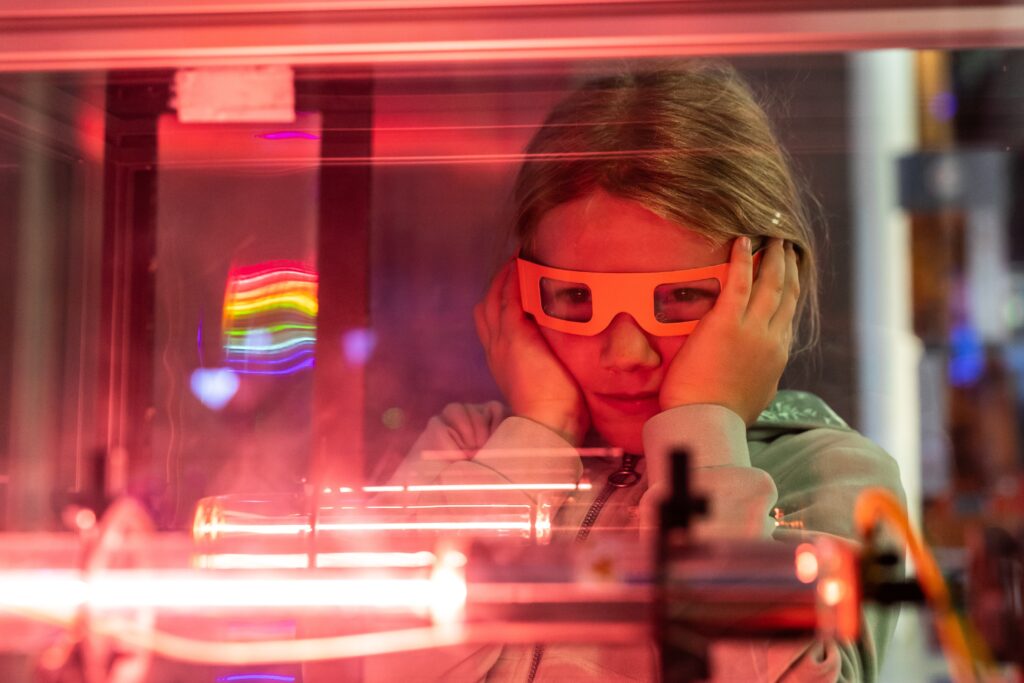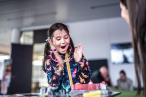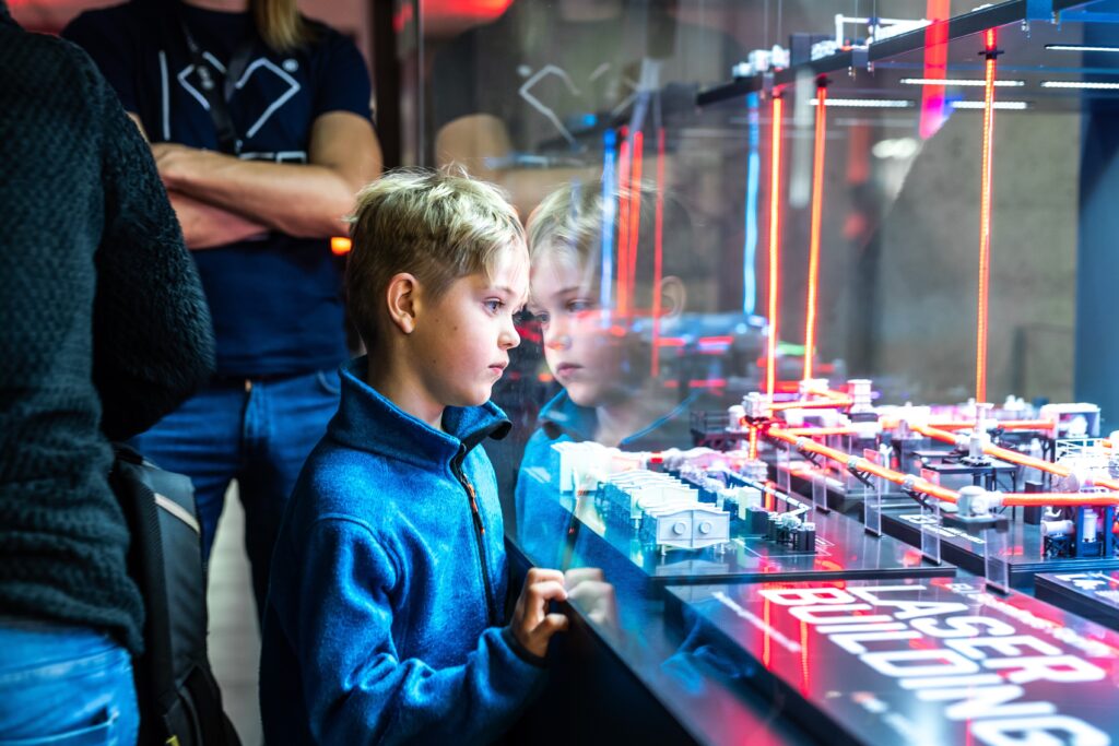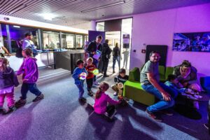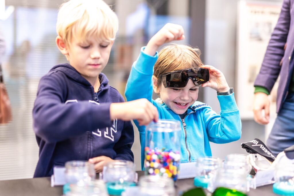 • Ani malí fanoušci vědy u nás nezůstali stranou dění – čekaly na ně aktivity, které kombinují zábavu s experimentováním, přemýšlením a vědeckými výzvami, i několik vyloženě hravých zastávek (laserové šachy, Laser Maze, malování na obličej fosforescenčními barvami nebo oblíbené tvoření ze svítících tyčinek).
