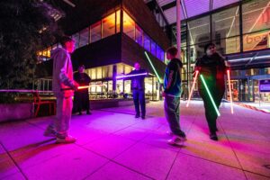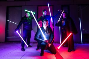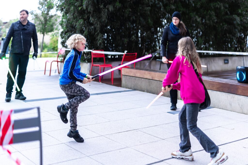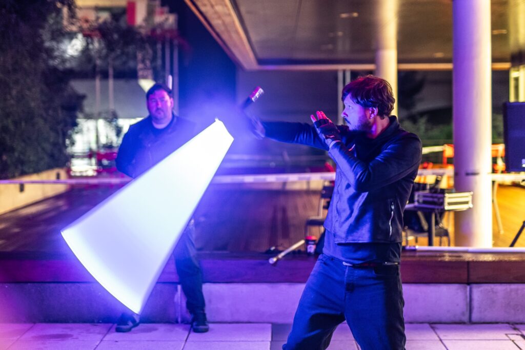 • Šermíři ze Saber Academy (jejíž členem je i náš laserový fyzik Vašek) program oživili šermem světelným měčem a několika show.