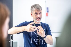 • Nevynechali jsme ani klasické workshopy s tematikou laserové bezpečnosti, Rutherfordova rozptylu, nastavování svazků na optickém stole a udržování „čistých“ prostor.
