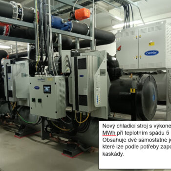 Původní chladicí systém dodával chladicí vodu o teplotě 8–10 °C, zatímco nová jednotka dokáže dosáhnout teplot až 5 °C. Nový chladicí systém umožňuje plynulejší regulaci a technicky se jedná o dvě zařízení kombinovaná do jednoho, což umožňuje ekonomický provoz i při částečném zatížení.
