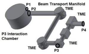 ELI Beamlines presented extensive 3D modeling of EMP propagation in the P3 laser chamber and a laser beam transport manifold decisive for am EMP absorption tailoring. Fig.2 shows a detailed structural model used for an EMP propagation simulation in (a) and an electric field snapshot at a time of 75 ns in the central horizontal plane of a vacuum system in (b).