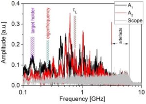 ELI Beamlines and PALS facility in Prague also contributed to this review with a recent works. Electromagnetic field resonant modes were calculated for PALS interaction chamber and confirmed in experiment. In particular, influence of target holder for a cryogenic solid-state hydrogen target to EMP emission was investigated. Fig.1 shows a cryogenic nozzle (a), the positions of the probes (b) and typical spectra of signals obtained by probes (c).