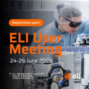 The registration is now open for the ELI User Meeting to be hosted by the ELI Beamlines Facility in Dolní Břežany, Czech Republic, on 24-26 June 2026.